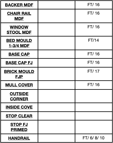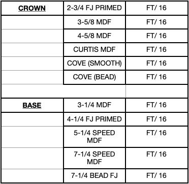 Baseboard - Door/ Window Casing - Crown - Quarter Round - Shoe - Square Edge Board - Handrail - Base cap